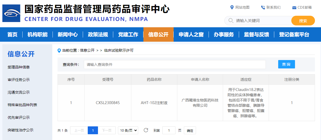 近日,廣西鷺港生物醫(yī)藥科技有限公司(以下簡(jiǎn)稱“鷺港生物”)研發(fā)的AHT-102注射液通過國(guó)家藥品監(jiān)督管理局臨床默示許可(受理號(hào):CXSL2300845)。AHT-102注射液是針對(duì)熱門腫瘤靶點(diǎn)Claudin18.2的生物制品創(chuàng)新藥,主要適應(yīng)癥為胃癌和胰腺癌。
