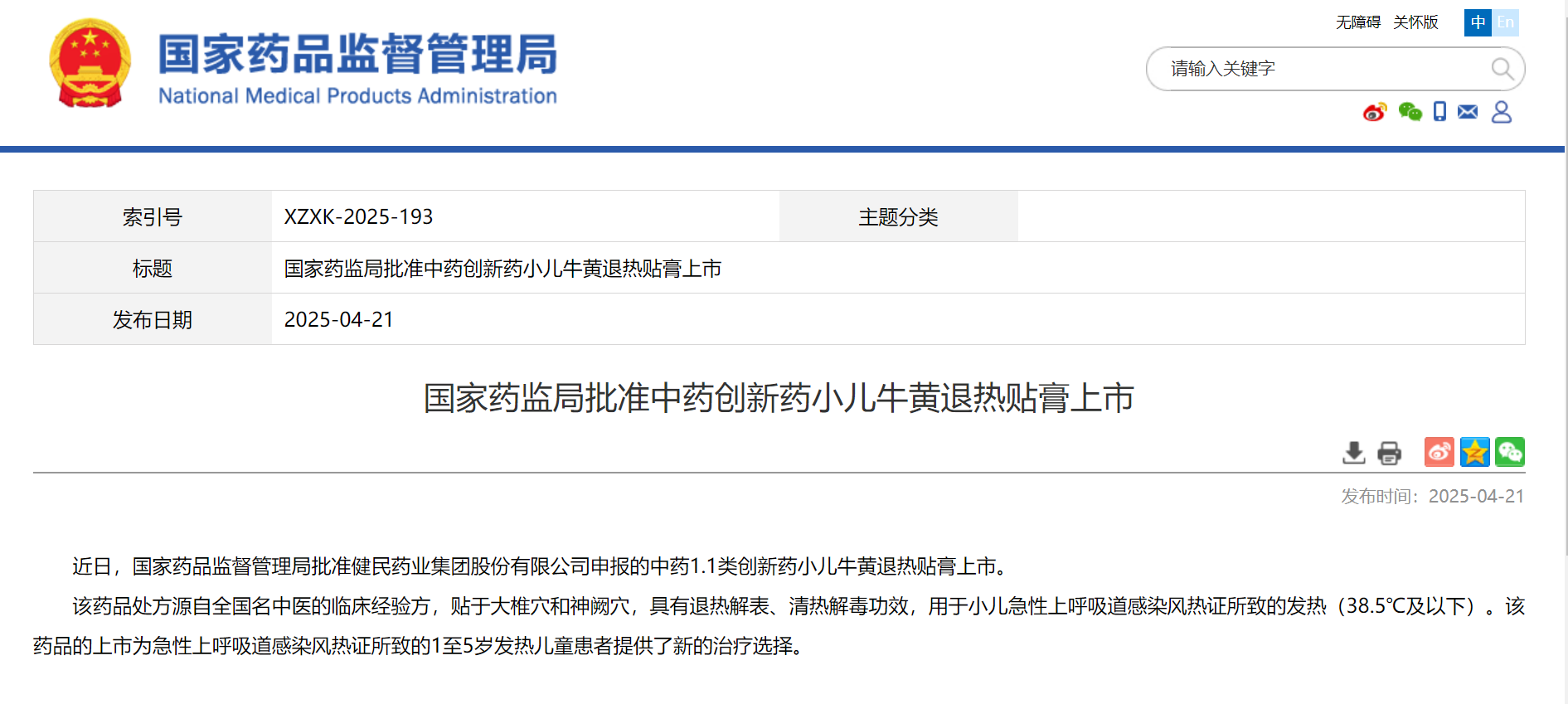 2025年4月21日,由天勤生物提供非臨床安全研究技術(shù)支持的健民集團中藥1.1類創(chuàng)新藥小兒牛黃退熱貼膏,正式獲得國家藥品監(jiān)督管理局批準上市。作為該項目核心研究合作方,天勤生物通過多項定制化毒性試驗與安全性評價研究,為該兒科藥物獲批上市提供了科學支撐。